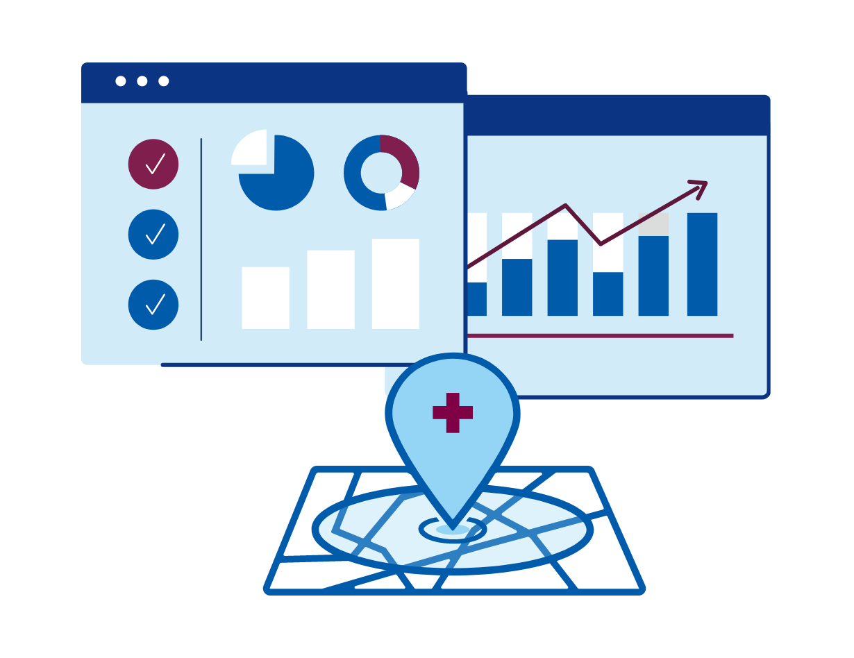 MiSolコンサルティングサービスでは、自社で開発した診療圏分析ASPと豊富なデータを使って、医療機関のデータに基づく現状把握と、そこから導かれる将来像を描く支援を行っています。